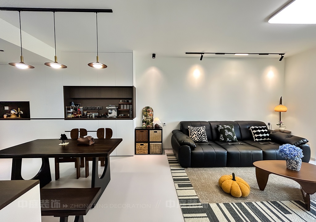 瀏覽量:72這套房從普通居所蛻變?yōu)槎际携熡鷪觯筒蛷d以黑白棕營造高級松弛感,咖啡角、藝術(shù)畫、游戲區(qū)藏著主人對生活的熱愛,餐廚煙火與雅致共生,每處角落的陳設(shè)都是靈魂的妥帖安放,是裝滿故事與溫度的私屬堡壘。